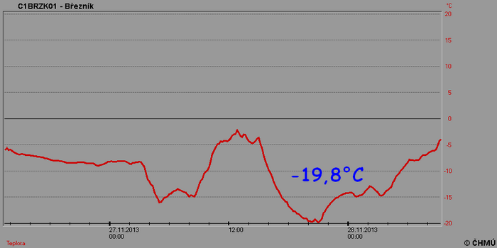 Graf ze stanice Březník, kde teplota klesla na -19,8°C, (upraveno, zdroj: ČHMÚ):
