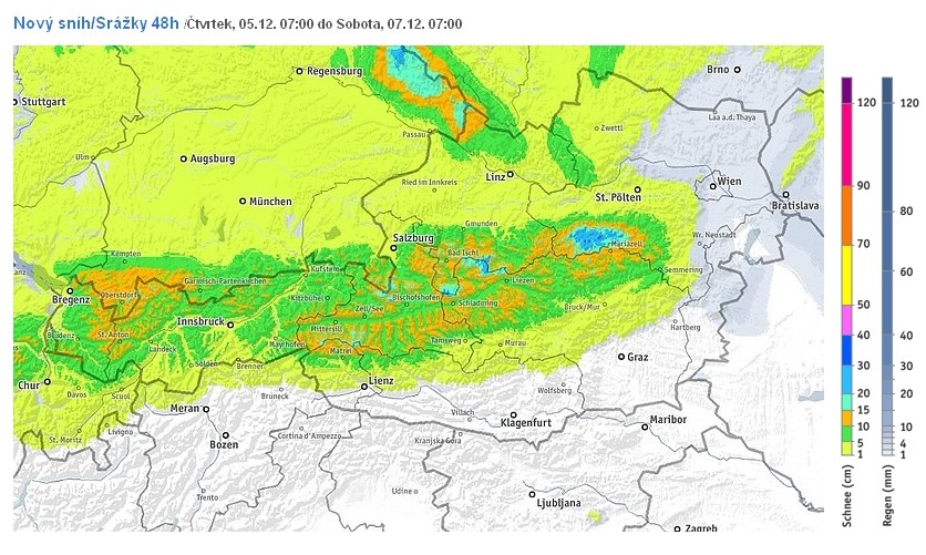 Předpověď nového sněhu, zdroj: bergfex.cz :