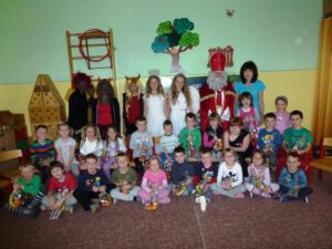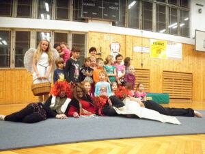 I na kroužek sportovní gymnastiky při DDM Vimperk přišel čert, Mikuláš a dokonce i anděl. Každý, kdo hezky zacvičil, byl pochválen a dostal malou