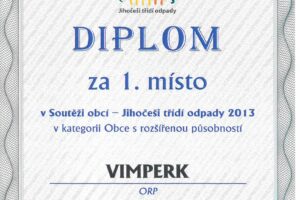 VIMPERÁCI, GRATULUJEME, patříte opět k nejlepším ! „Umístili jste se na 2. místě v celokrajské soutěži obcí a měst Jihočeského kraje v soutěži „Jihočeši třídí odpady