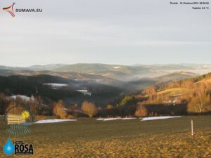 Celý týden panovalo nad Šumavou inverzní počasí. Horské a vyšší polohy zažívaly slunečné dny, kdežto v polohách zhruba pod 600 metrů se udržovala nízká oblačnost