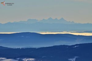 I na Štědrý den pokračovalo na Šumavě inverzní počasí. Díky němu byla opět výborná dohlednost nejen po šumavských kopcích, ale i na alpské vrcholy, které