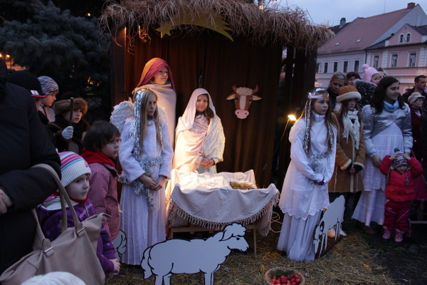 Děti ze ZŠ T. G. Masaryka spolu se svou učitelkou Hanou Šiškovou připravily tradičně krásnou scénu Betléma s Ježíškem, nechyběly ani ovečky (ty se těšily velké pozornosti dětských příchozích a majiteli patří velké poděkování za jejich opakované zapůjčení), zájemci si mohli ještě připálit svíčku betlémským plamínkem.
