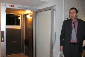 Nový výtah, který z historické budovy sušického gymnázia udělal bezbariérový objekt, mohou požívat v případě potřeby studenti, zaměstnanci i hůře mobilní návštěvníci už od poloviny