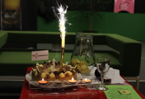 Výroční talkshow Radka Nakládala Škrtněte si, prosím, byla oslavou se vším všudy. Sušická kinokavárna doslova praskala ve švech, nechybělo vynikající slovenské královské víno, narozeninový