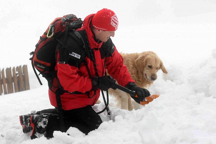 Ukázka záchranářské práce psa v terénu