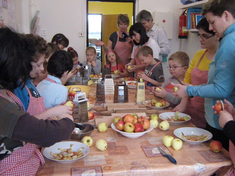 Škrábání, strouhání jablek, válení těsta a správné naplnění závinu, zvládly všechny děti samostatně a na jedničku. A to je hlavním cílem našich akcí, aby děti zábavnou formou získaly nové dovednosti, vědomosti, činnost probíhala v přátelské atmosféře a v tempu, kterému budou stačit všechny děti. Společnost při pečení jim dělal redaktor Ing. Václav Malina, který děti vyzpovídal a udělal s nimi reportáž pro Český rozhlas České Budějovice.