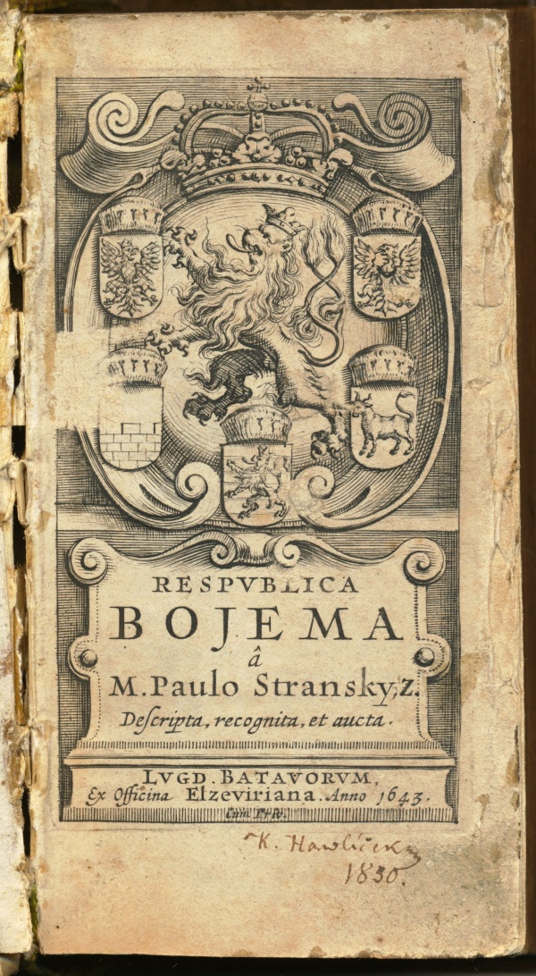 Drobná latinská kniha osmerkového formátu (výška 12 cm) v bílých pergamenových deskách je dílem českého protestanského měšťana Pavla Stránského ze Zapské Stránky (1583–1657), absolventa pražského vysokého učení a litoměřického písaře. V roce 1627 byl pro víru vypovězen z Čech a postupně žil v několika městech v Sasku a naposledy v polské Toruni. Dílo Respublica bojema (O státě českém) je topografickou prací encyklopedického charakteru. Seznamuje čtenáře s podobou předbělohorského českého království. Popisuje jednotlivé kraje Čech, všímá si regionálních zvláštností, několika slovy charakterizuje všechna významná města (včetně Sušice), politický systém, jazykové poměry apod. Stránský své dílo pojal jako protestanskou apologii i jako vlastní vyjádření vřelého vztahu k rodné vlasti. Poprvé kniha vyšla v holandském Leidenu v roce 1634, později v mnoha vydáních v národních jazycích (česky poprvé roku 1893). Muzejní exemplář je druhým vydáním z roku 1643. Jeho hodnotu coby vzácného starého tisku zvyšuje vlastnický přípisek K. Hawlíček m. p. 1830, dokazující, že byla součástí knihovny Karla Havlíčka Borovského. Způsob, jakým se dostala do Sušice, není znám. Pravděpodobá je však cesta přes Josefa Ambrože Gabriela, kterému byl Havlíček svědkem na svatbě s Marií Podlipskou, jeho známou z Kutné Hory.