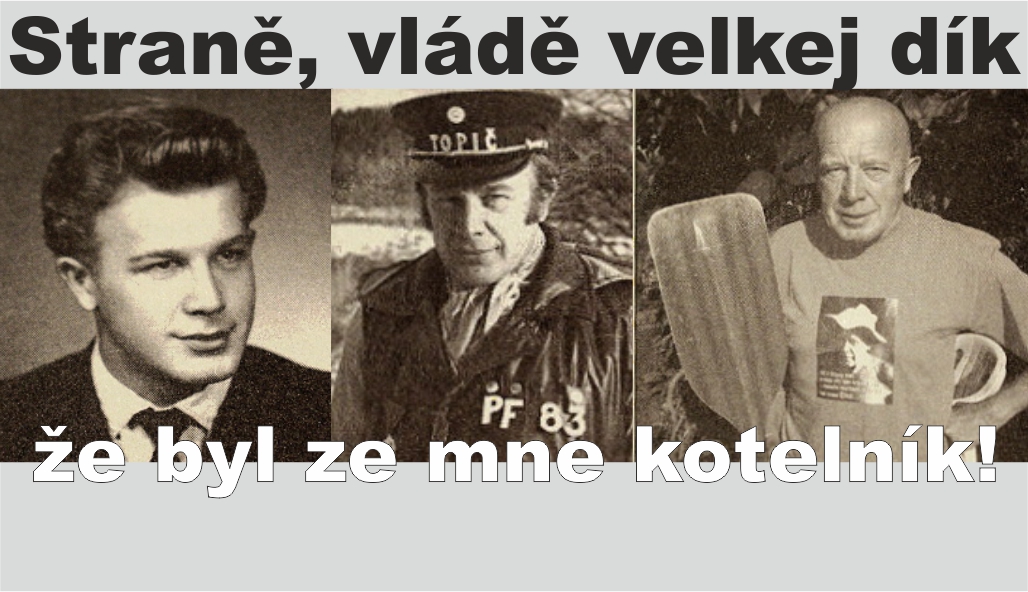 Ale i v té Okule s lopatou – to byl zase trénink – tam mě to sice děsně štvalo, ale vydržel jsem to a díky tomu jsem přičuch‘ tady k těm starým pohlednicím a k historii Šumavy vůbec. Takže vlastně „straně a vládě za to dík, že byl ze mě kotelník“… Já to bral s humorem, protože život je na …. a ještě se trápit?“