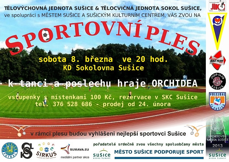 Takže tančit mohou (a budou) i sportovci na druhém SPORTOVNÍM PLESE 8. března v sušické Sokolovně. Součástí večera bude slavnostní vyhlášení a ocenění nejlepších sportovců Sušice za rok 2013.