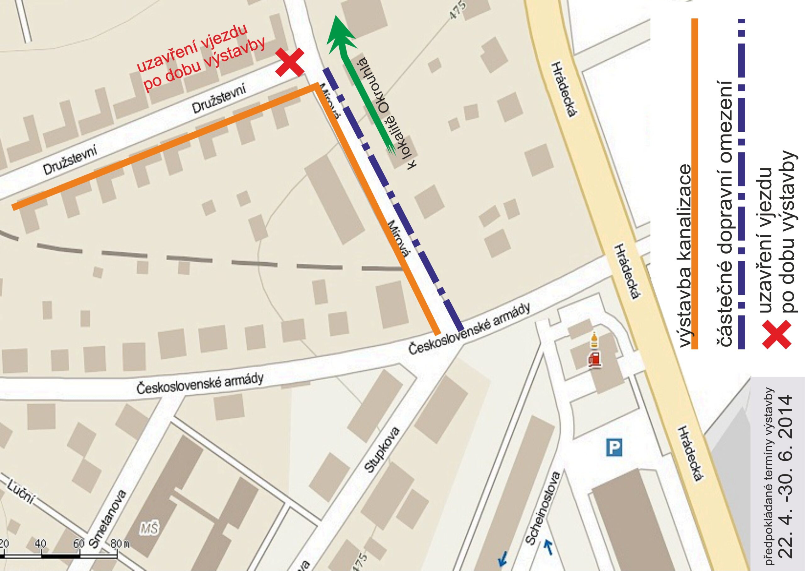 Stavební práce vyvolají výrazné omezení dopravy v ul. Mírová v úseku od křižovatky s ul. Čsl. armády po křižovatku s ul. Družstevní.
