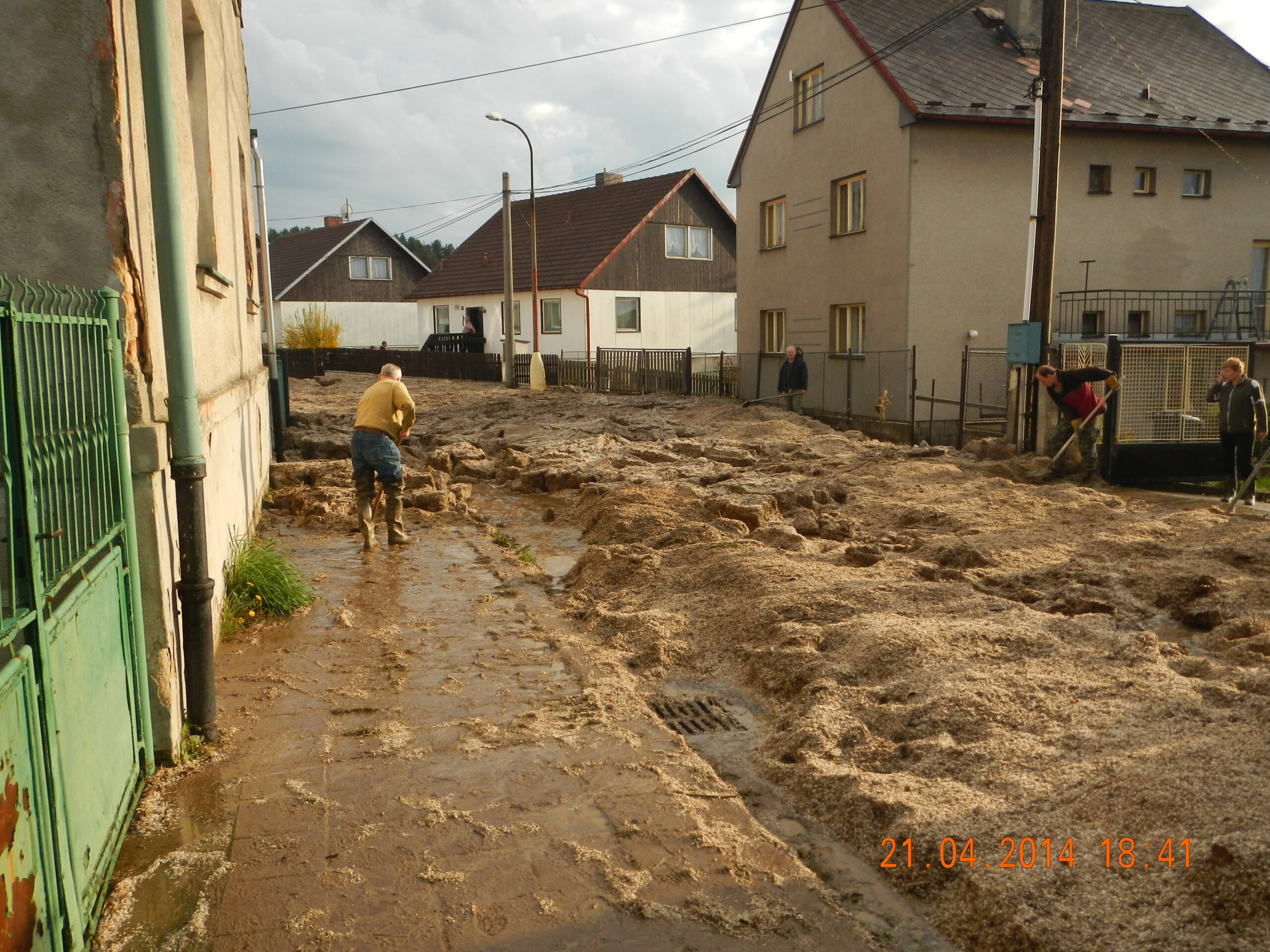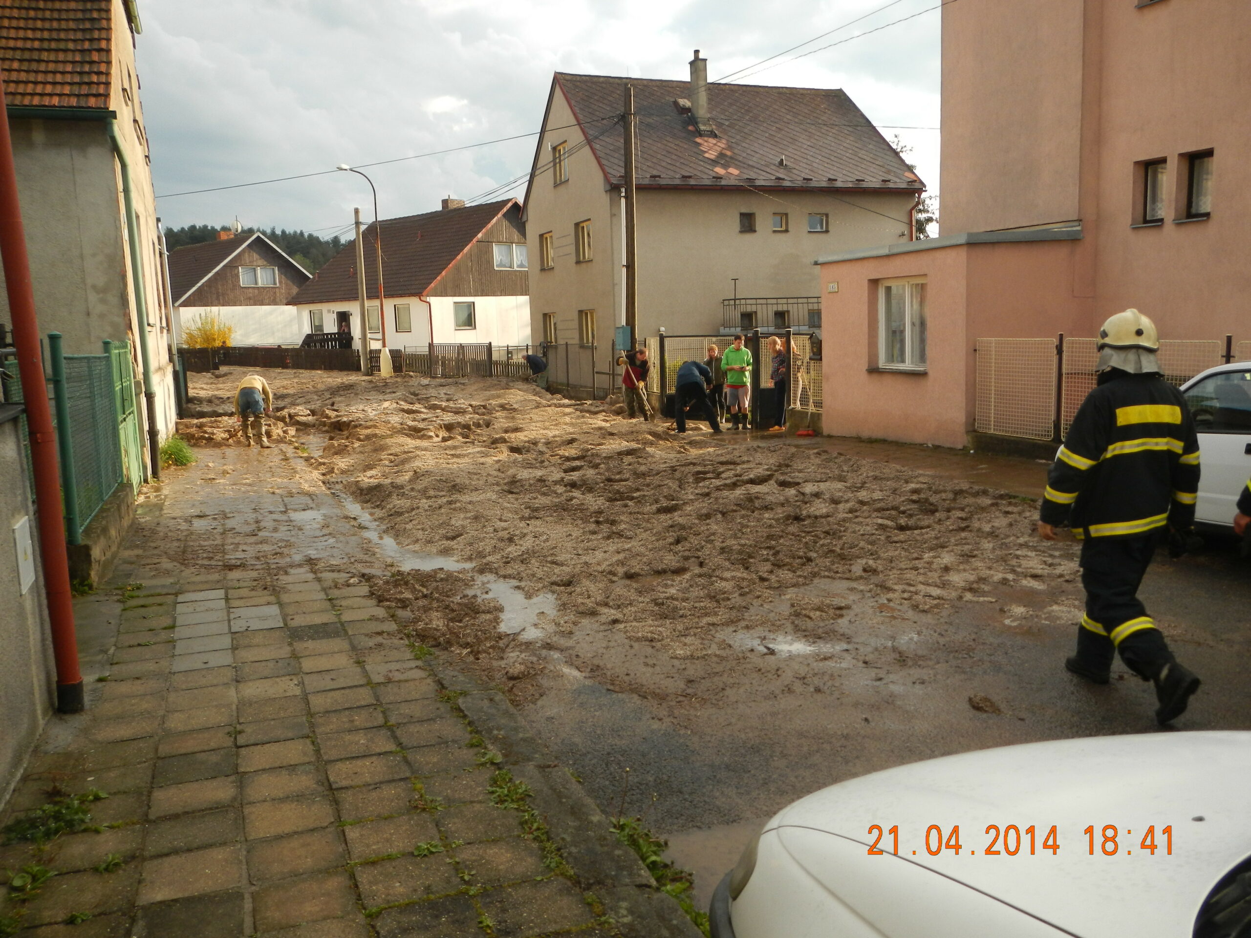 Takhle potápilo Strakonice – v ulici Pohraniční stráže bylo nutné na uvolnění silnice, která byla zasypána kroupami s blátem v délce 80 metrů a výšve 50 cm přivolat profesionální hasičd. Ti nakonec uvolnění komunikace zajistili ve spolupráci s místními Technickými službami.