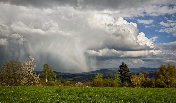 Bouřka s krupobitím a duhou u Prachatic, foto Aleš Morong, 21. duben 2014: