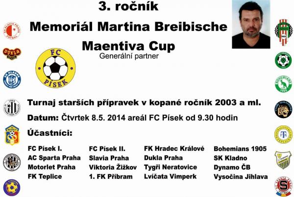 Rok uplynul jako voda a velká akce pro fotbalovou mládež je opět tady. Ve čtvrtek 8. května od 9.30 hodin se v areálu FC Písek uskuteční v pořadí již 3. ročník Memoriálu Martina Breibische – Maentiva Cup.