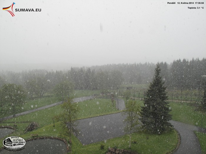 Sněhové přeháňky 12. května zaznamenaly naše webkamery: