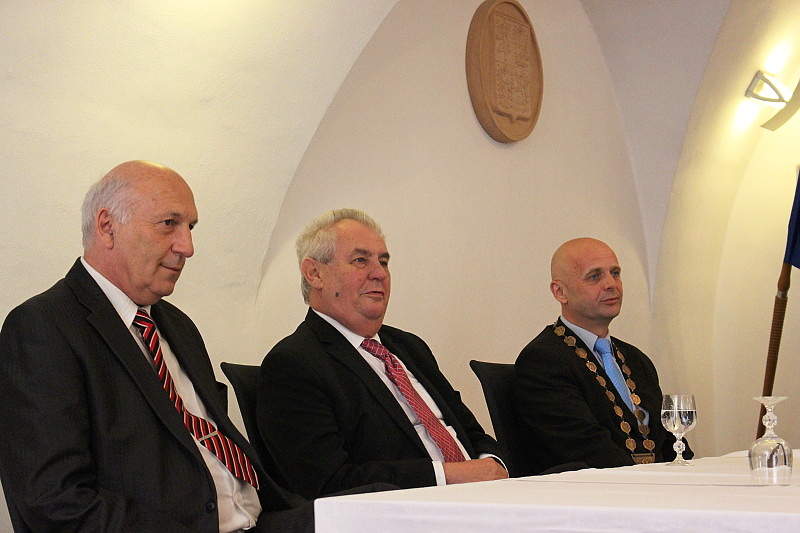 Na sušické radnici hovořili s představiteli města Sušice v čele se starostou Petrem Mottlem, starosty okolních obcí a dalšími pozvanými hosty na včerejším krátkém setkání prezident ČR Miloš Zeman a hejtman Plzeňského kraje Václav Šlajs.