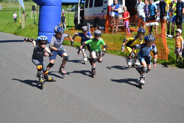 V hlavním závodě na in-line bruslích se z vítězství radoval Tomáš Hrdlička, před Karlem Škvrnou a Markem Hrdličkou.