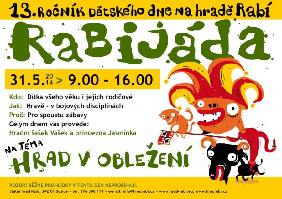 V sobotu 31. května se otevře hradní brána na Rabí všem dětem i rodičům, kteří si budou chtít hrát. Už potřinácté připravila správa hradu Rabí pro návštěvníky nevšední dětský den, plný zajímavých i dobrodružných her a soutěží. Pro všechny tradiční i nové návštěvníky je na letošek připraveno velké překvapení, soutěžit mohou s dětmi tentokrát i rodiče, takže o zábavu pro všechny nebude nouze.