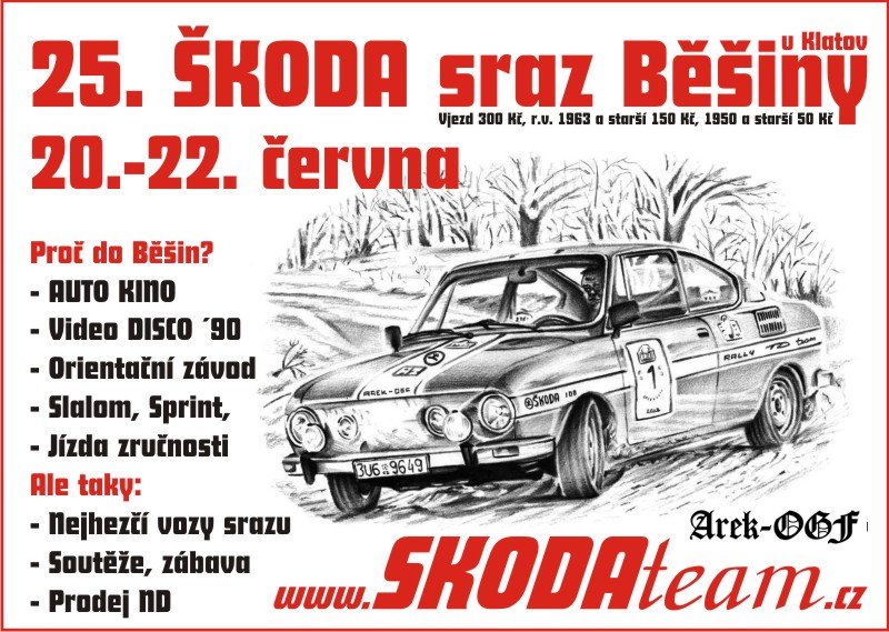 Už tento víkend – 20. – 22. června se v Eurocampu v Běšinech koná 25. ŠKODA SRAZ. Jako tradičně je pro majitele i příznivce této značky připraven bohatý program. A tak se můžete těšit na autokino, volbu MISS ŠKODATEAMU, soutěže v kráse i rychlosti, rockovou video diskotéku, k vidění budou i některé historické unikáty, zkrátka každý si vybere to své.