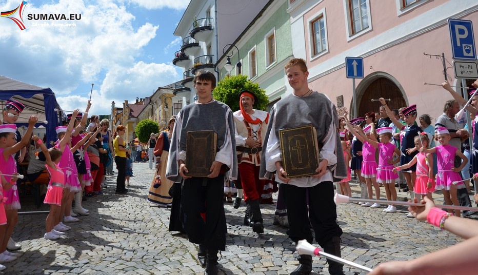 Samozřejmě byl vzdán hold tiskaři Johannu Alacrawovi, který v roce 1484 přinesl do Vimperku knihtisk z bavorského Pasova a vytiskl tu první český kalendář. Sice brzy odešel, protože v místě tehdy lidé tolik tisků, aby se tu dobře uživil, nekupovali, ale přesto za sebou nechal v historii města nesmazatelnou stopu. Dva z jeho latinských tisků jsou vystaveny v muzeu na zámku.