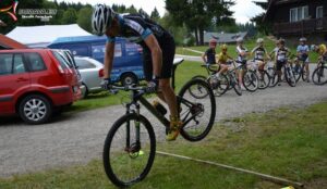 Sportcamp Zadov měl v úterý na starosti známý biker Milan Spěšný. Ukazoval dětem jak překonávat těžké překážky v terénu. Milan Spěšný v akci..