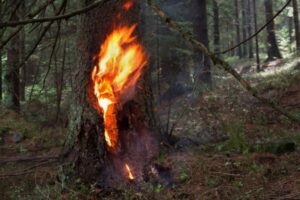 Strom začal hořet po zásahu blesku, oheň byl včas zlikvidován a větší škody nezpůsobil Včera dopoledne zasahovali strážci NP a CHKO