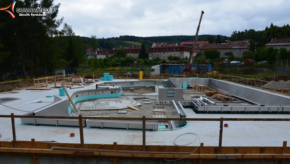Koupaliště Vimperk – v horkých dnech bychom ho ocenili, ve studenějších se chodíme dívat, jak stavba pokročila.