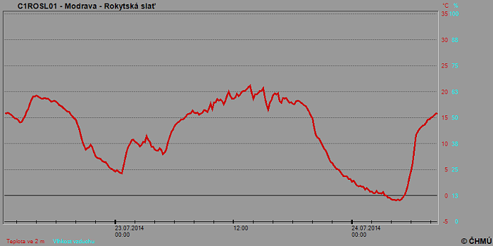 Celkem 19 dní v řadě na Šumavě nemrzlo a to ani ve vyhlášených mrazových kotlinách jako jsou Perla, Březník či Rokytská slať. Poslední mrazivé ráno bylo zaznamenáno 4. července a pak až dnes, to je 24. července. Teplota se nejníže dostala na stanici Rokytská slať -1,0°C na Březníku -0,6°C a na Perle -0,5°C. Na ostatních mrazových stanicích mráz zaznamenán 24. července nebyl .V ostatních lokalitách mimo mrazové mráz nebude zaznamenán ještě několik týdnů.