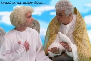Kudy zpátky do pohádky? Přece přímo za nosem, potom vlevo, kousek do kopce….. prostě na Mouřenec, kde v romantickém letním podvečeru popletený anděl Petronel, vykázaný