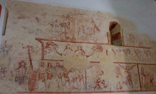 Nástěnné malby byly po celá staletí ukryté pod omítkou a náhodně objeveny při rekonstrukci kostela v roce 1993. Na severní stěně kostela se jedná o cyklus Poslední soud z období kolem roku 1310. V konše apsidy je pak vyobrazeno Ukřižování z doby kolem roku 1360.