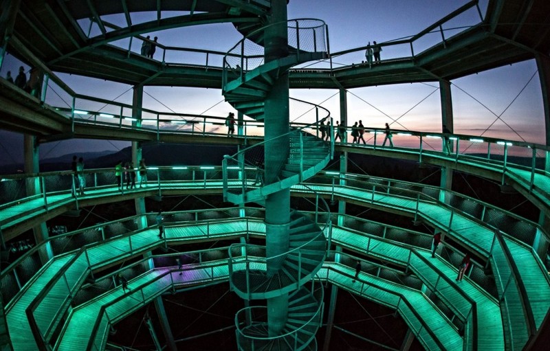 Ještě dvě srpnová úterý bude otevřená až do 23 hodin. Vyhlídková věž září do tmy barvami, což zajišťují speciální světla. Mimo úterky svítí jen ochoz. Noční stezka už o prázdninách přilákala stovky lidí.