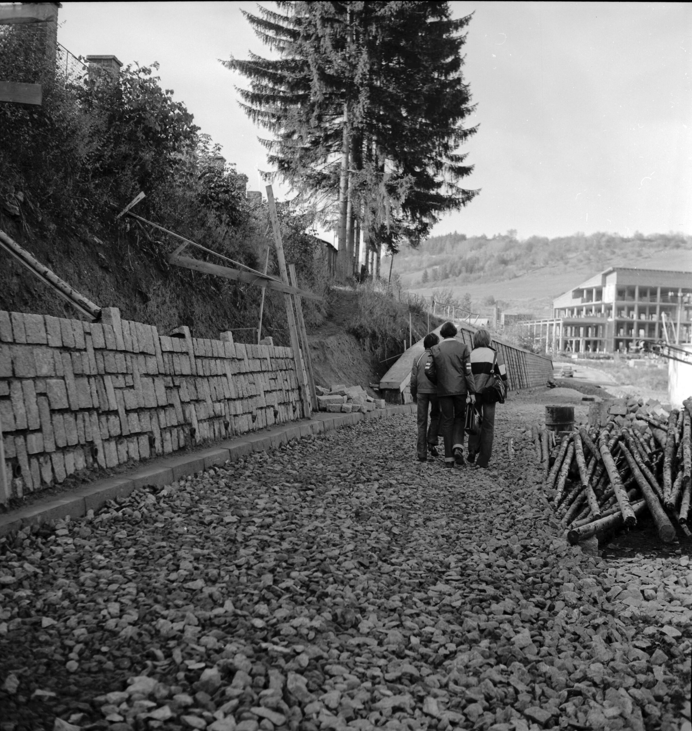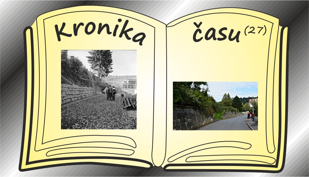 Však právě proto byly stavěny opěrné zdi, které zajišťují stabilitu terénu na mnoha místech – třeba ve Švermově ulici. Ta, která je zachycená na černobílém snímku, je 36 let stará a jak je vidět, pořekadla o poctivé práci se tu potvrzují (abychom nekřivdili – určitě v průběhu let také prošla údržbou a opraami, ale její původní tvář je zachovaná). Tedy zeď stojí, věrna svému jménu podpírá a zajišťuje. Proto se možná ani pohled do doby před 36 lety tak moc neliší i když – tenkrát tu bylo o něco méně zeleně, nahoře jsou viditelné části oplocení a zděné sloupky některé ze zahrad, i do tehdejší pánské a chlapecké módy můžeme zabrousit…