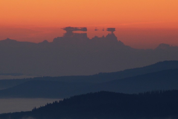 Středeční výstup (24. září) na Boubín mě překvapil impozantní fata morgánou nebo-li svrchním zrcadlením Alp. Viděl jsem shora tento jev už víckrát, ale nikdy takto intenzivně. Období inverzí začíná.