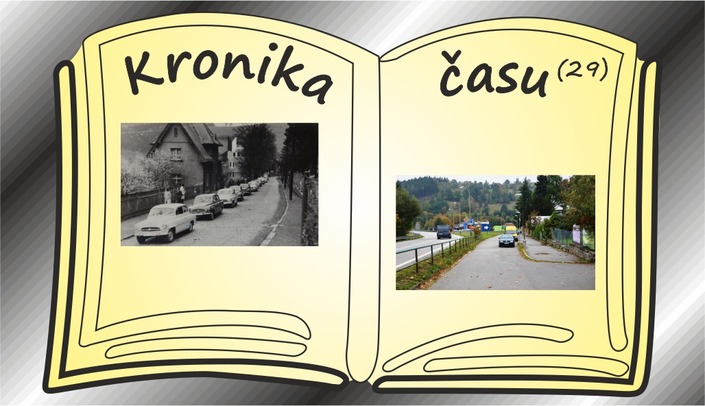 Tahle dnešní proměna je opět hodná pozornosti, co říkáte? Nejen komunikace a třeba její  povrch, ale i domy, hustá zeleň, automobily, tehdejší móda. Oba snímky dělí 50 let a za tu dobu leccos „poskočilo“ …