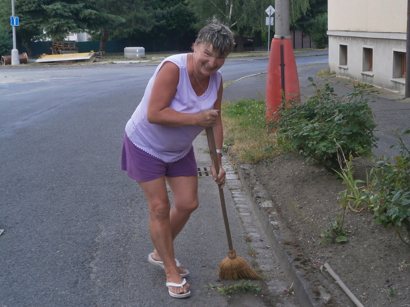 Tak například již 36 let uklízí a pečuje o záhon před domem, o veřejné záhony! Nikdo jiný z jejich domu jí nepomůže, ale hezké je to, že si nikdy nestěžovala, ale stále pleje, kypří záhony, zametá. Jen ona sama. Dělá tu práci s radostí téměř každý den, i půl silnice zamete. A nečeká, až přijede úklidová služba, která by to udělala.