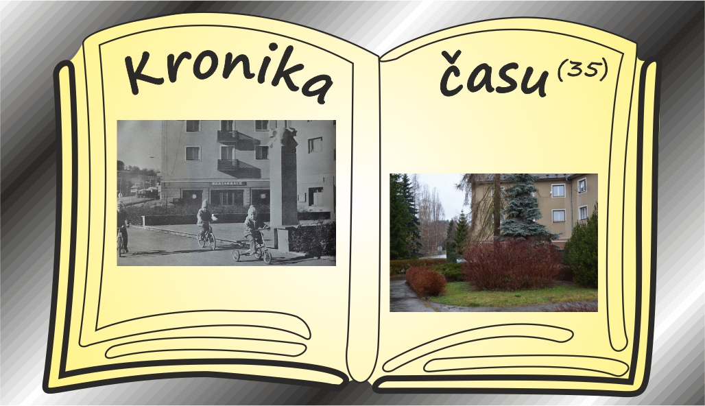 Trocha nostalgie na nás ze staré fotografie přece jen dýchne… caparti na dvou a více kolech se tu dnes už prohánějí jen sporadicky (není divu), ‚typické dobové umění ‚ ve veřejném prostoru nahradila dnes už vzrostlá zeleň. Až půjdete kolem, nebo tudy budete procházet, zkuste si představit, jak tohle místo asi vypadalo, třeba před třiceti a více lety.