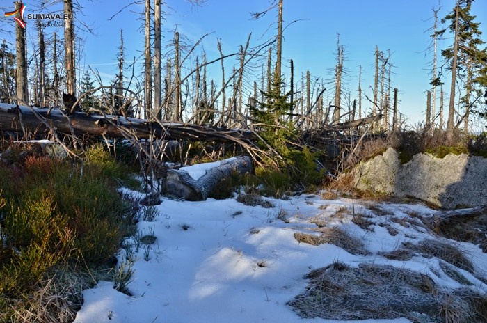 Byli jsme požádání hydrology z Českého hydrometeorologického ústavu, abychom zmapovali okolí vrcholu Plechý, kde nová meteostanice ukazuje i přes kladné teploty sněhovou pokrývku, která příliš neodtává. Ostatní šumavské lokality jsou již několik dní beze sněhu a to i vrchol Velký Javor. Vydali jsme se s kolegou Václavem Šestákem na vrchol Plechý, abychom situaci zmapovali.