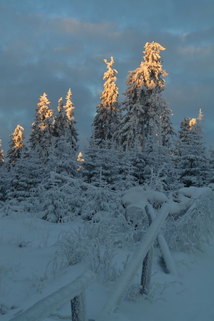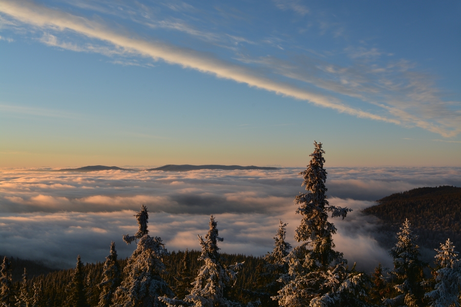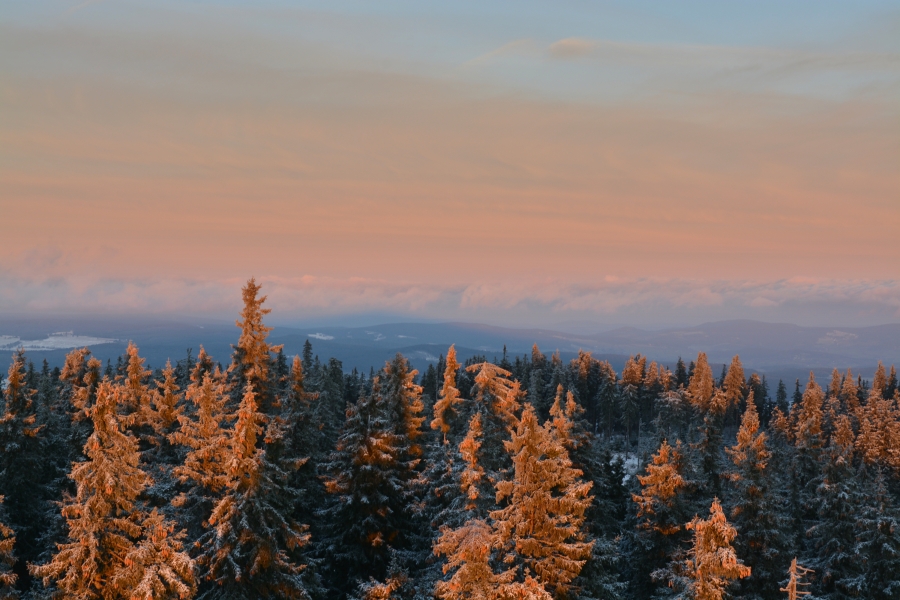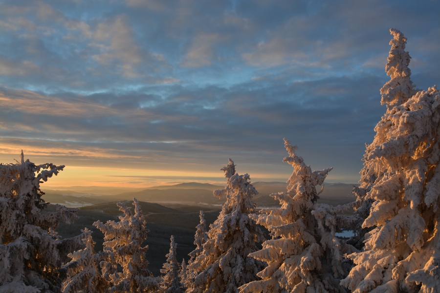 V každém případě se nicméně pustilo do působivého zlacení namrzlých smrčin na Boubíně i špičkách dalších šumavských vrchů.