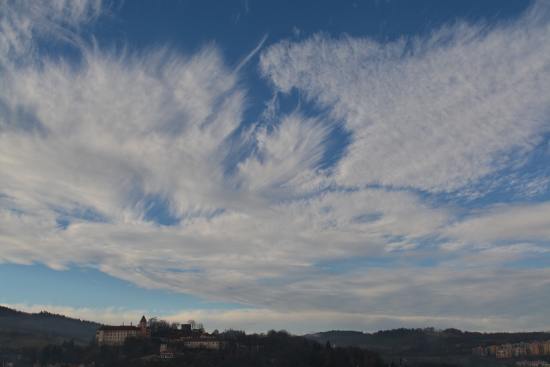 Sluníčko mělo krátce po svém východu přichystán slavnostní oblačný ceremoniál, jemuž z opticky nejvzdálenějšího obzoru přihlížel i rakouský Klosterwappen …