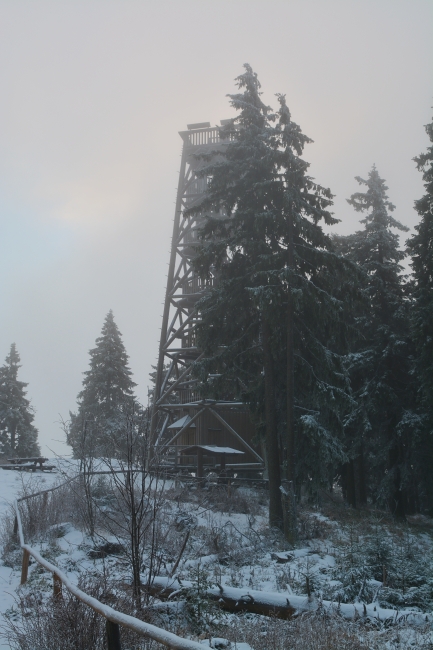 Zasloužil se o to třístupňový mrazík. Mlžné cáry naštěstí vesměs jen prolétly okolo věže …