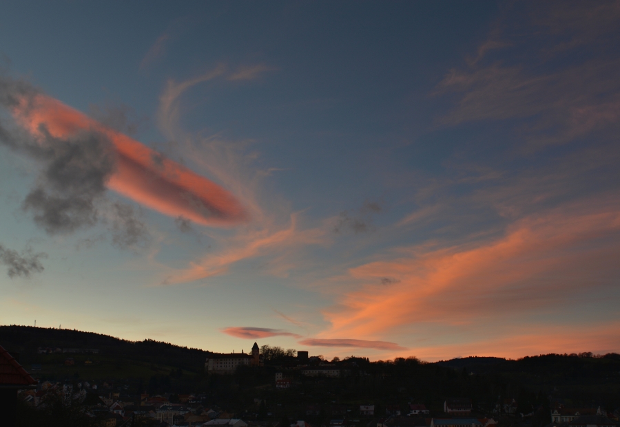 Za bezmála magické pak bylo možno považovat toto oblačné rozloučení nad vimperským zámkem necelou čtvrthodinku po západu posledního předvánočního sluníčka …