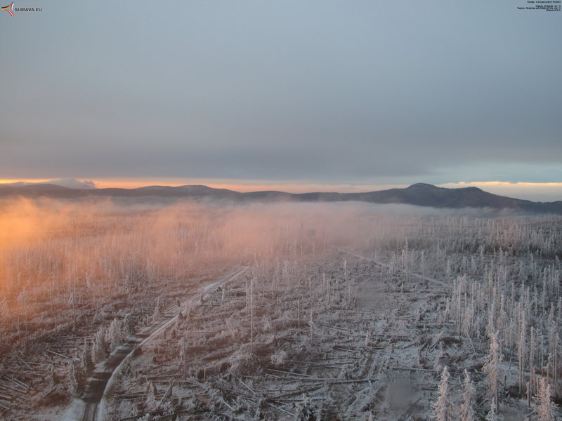 Z šumavských meteostanic se pod -15°C dostala ještě teplota na Perle -15,3°C. V obci Kvilda bylo o více jak 5°C tepleji -10,2°C. V tabulce uvádíme vybrané stanice s minimální teplotou pod -5°C. Pod tuto hranici klesly ještě teploty na stanicích Churáňov, Poledník, Zbytiny, Lenora a Černá v Pošumaví