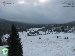 Studená fronta přinesla na Šumavu nejen ochlazení, ale i sněhové přeháňky a v horských oblastech i trvalejší sněžení. Sněhová pokrývka se udržela zhruba v polohách