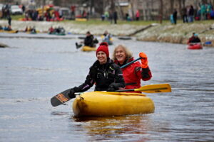 Ze Sušice do Čepic, k mostu se svatým Janem Nepomuckým, patronem vodáků (také), dnes plulo celkem 33 lodí, při V. ročníku Vánočního splouvání Otavy s