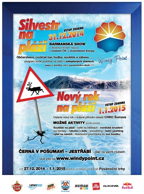 Silvestrovský program začne již od 10 hodin ráno povánočními trhy v týpí na pláži a soutěžemi pro děti. V 16 hodin přivítá návštěvníky několikanásobný mistr České republiky a vicemistr Evropy ve flairu, David Neumann, horkou Becherovkou, která bude pro příchozí hosty zdarma. Celým večerem bude hudebně provázet skupina Tabsker, která v několika vstupech zahraje průřez žánry ska a reggae, balkánskou dechovkou nebo překvapí elektronickým setem. V rámci programu bude probíhat barmanská školička nebo karaoke. Bohatý program završí půlnoční překvapení na Lipenském jezeře. Bar Windy Point bude otevřen až do ranních hodin. Program na pláži bude pokračovat i ve čtvrtek 1. ledna, kdy bude v případě příznivých klimatických podmínek připraven sportovní program s výlety na běžkách, nordických bruslích a saních, snowkiting, zápas v ledním hokeji nebo rybolov v ledu. Bar na pláži Windy Point bude otevřen od soboty 27. prosince 2014 každý den až do čtvrtka 1. ledna 2015 a vstup je stejně jako v letních měsících zcela zdarma.