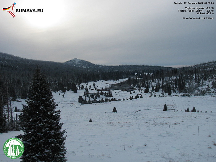 27. prosince jsme se probudili do nejchladnějšího rána tohoto roku. Teploty na většině šumavských stanic spadly pod -10°C, v šumavských mrazových kotlinách často i pod -20°C. Vůbec nejchladněji bylo na stanici Rokytská slať, kde teplota spadla až na -27,2°C. Pod -25°C bylo ještě na stanici Březník -26,1°C. Na dalších 4 stanicích byla teplota mezi -20°C až -25°C.