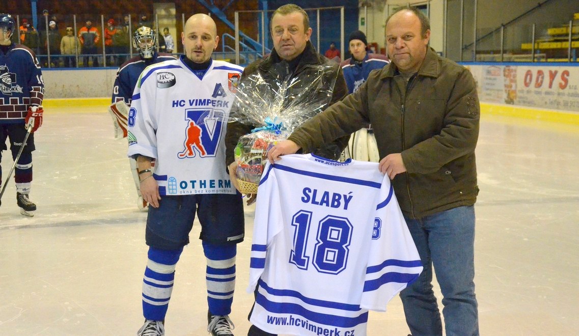 Oficiální rozlučku absolvoval před zahájením druhé třetiny rovněž kapitán domácího týmu a dlouholetá opora Karel Slabý, který je odchovancem Písku, ale velkou část sportovní dráhy prožil na vimperském ledě.