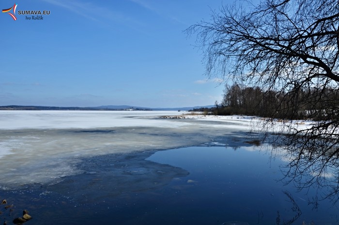 Levý břeh Lipenské přehrady je až na výjimky několik dní bez sněhové pokrývky. Jiná situace panuje na pravém břehu přehrady. Sněhová pokrývka neleží jen od Nové Pece k Přední Zvonkové a Valtrovu, za Přední Zvonkovou směrem na Kyselov panuje i nadále zimní počasí. Leží zde průměrně 15 cm sněhu. Ještě vyšší sněhovou pokrývku jsme naměřili za Zadní Zvonkovou kousek před hraničním přechodem, kde leží 28 cm.