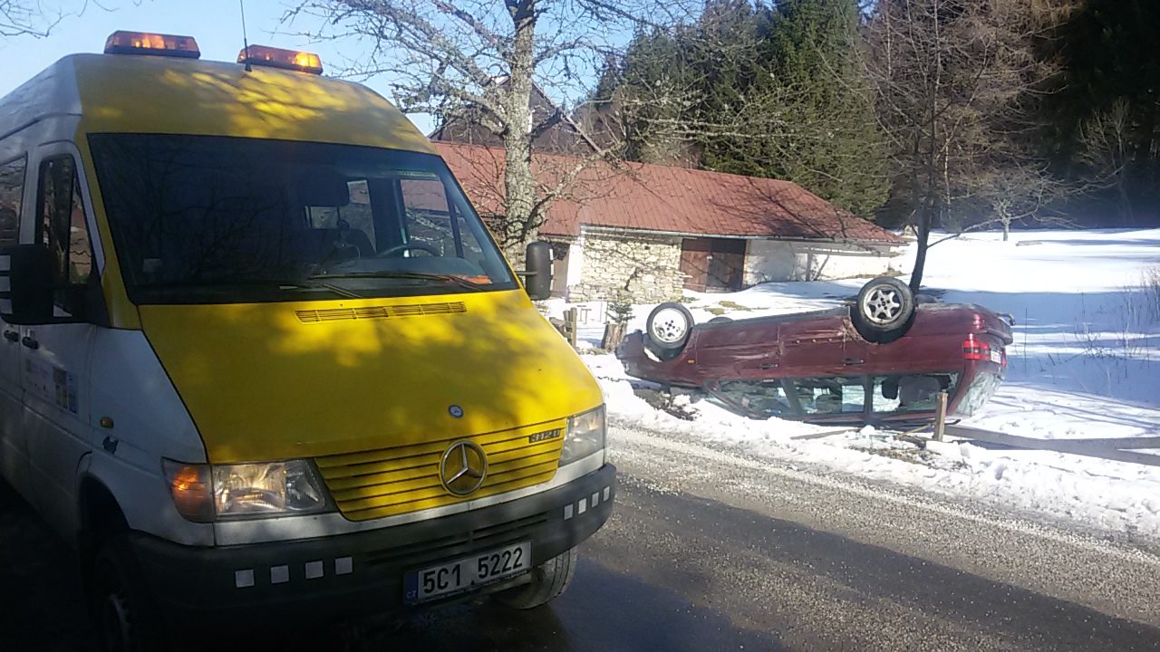 Nákladní auto sjelo do příkopu u Prášil, ve čtvrtek došlo ke kolizi dvou dodávek u Kvildy, VW Passat „zaparkoval“ do příkopu u Nového Dvora, stříbrný Berlingo skončil svou jízdu u Zadova.
