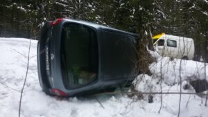Zejména šumavské silnice v centrální části Šumavy jsou ještě pod sněhem a rozmary počasí je často proměňují v klouzačku. Fotografie ze zásahů Šumavské asistenční s.